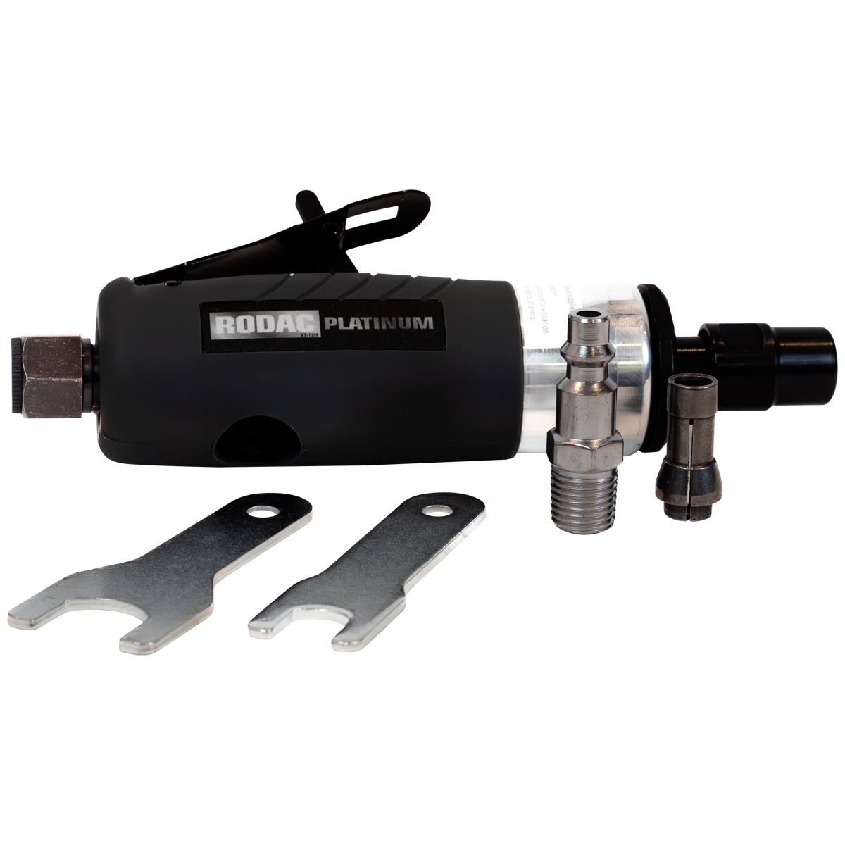 Introducing the RDRT-1108 by Rodac, a powerful and versatile die grinder designed to meet the needs of professionals in various industries. This exceptional tool boasts a 1/4" drive and operates at an impressive speed of 25000 RPM, allowing you to tackle demanding grinding, polishing, and deburring tasks with ease. The RDRT-1108 features a 1/4" air inlet and a 3/8" air hose, ensuring efficient airflow for optimal performance. With its compact and high-speed design, this die grinder offers excellent maneuverability and precision, making it an essential tool in any professional's arsenal. Equipped with a powerful motor, the RDRT-1108 delivers consistent and reliable performance, allowing you to achieve smooth finishes and precise results. Its efficient airflow system ensures a cool operation, enhancing durability and preventing overheating during extended use. Whether you're working in automotive repair, metal fabrication, or woodworking, this versatile die grinder is a perfect choice. Its compact size allows for easy handling and access to tight spaces, while its high-speed capabilities enable efficient material removal and surface preparation. Crafted with quality and durability in mind, the RDRT-1108 by Rodac is built to withstand the demands of rigorous professional use. It is a reliable and long-lasting tool that will serve you well for years to come. Enhance your productivity and achieve professional-grade results with the RDRT-1108 die grinder. Invest in this compact, powerful, and versatile tool and experience the precision, efficiency, and durability that Rodac is known for.